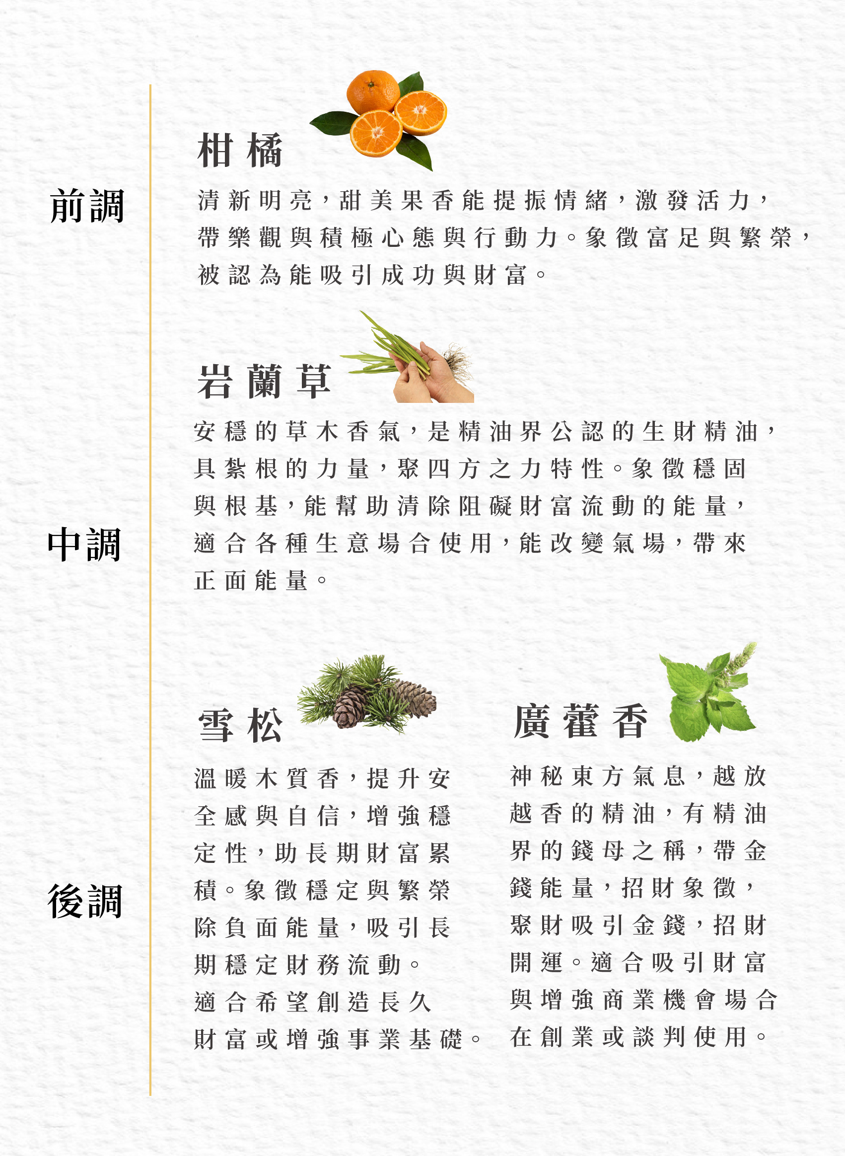 這瓶的香氣就是財氣,使用的香氛有精油界的錢母之稱