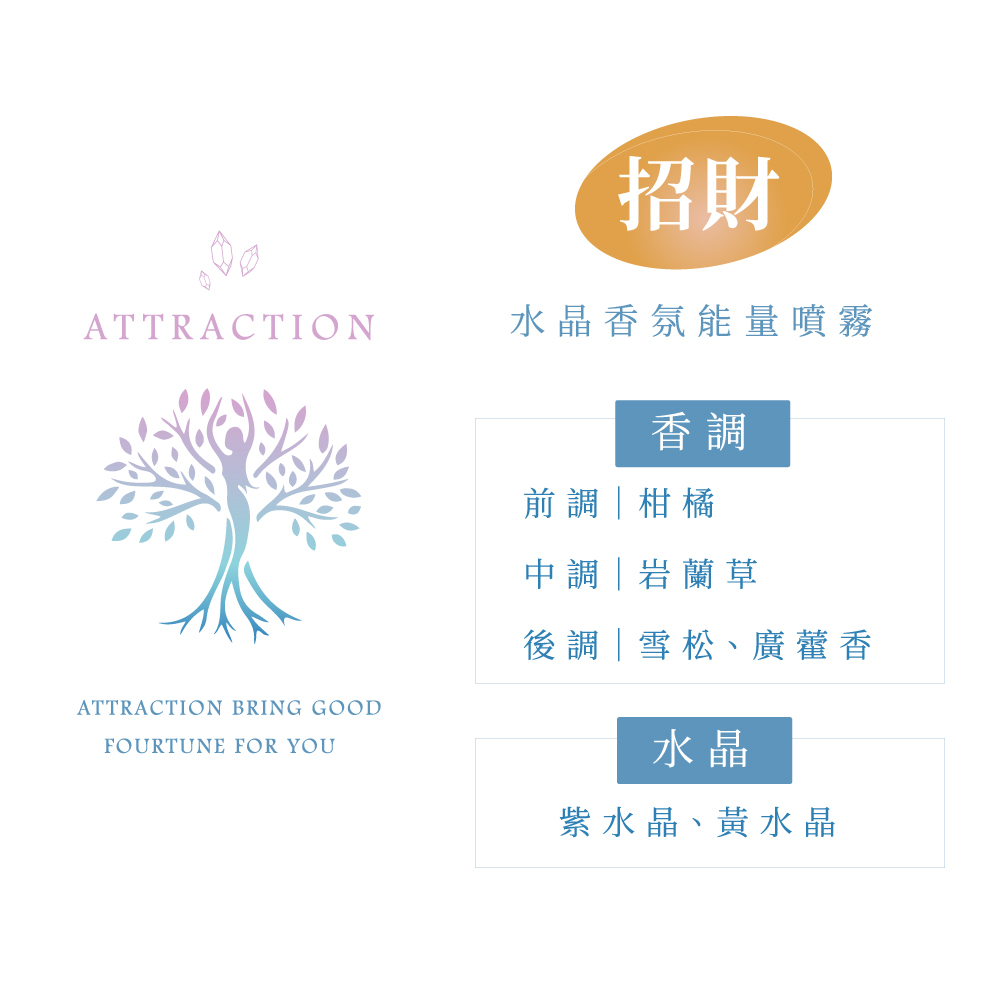 品牌名「Attraction吸引力」來自宇宙的吸引力法則。