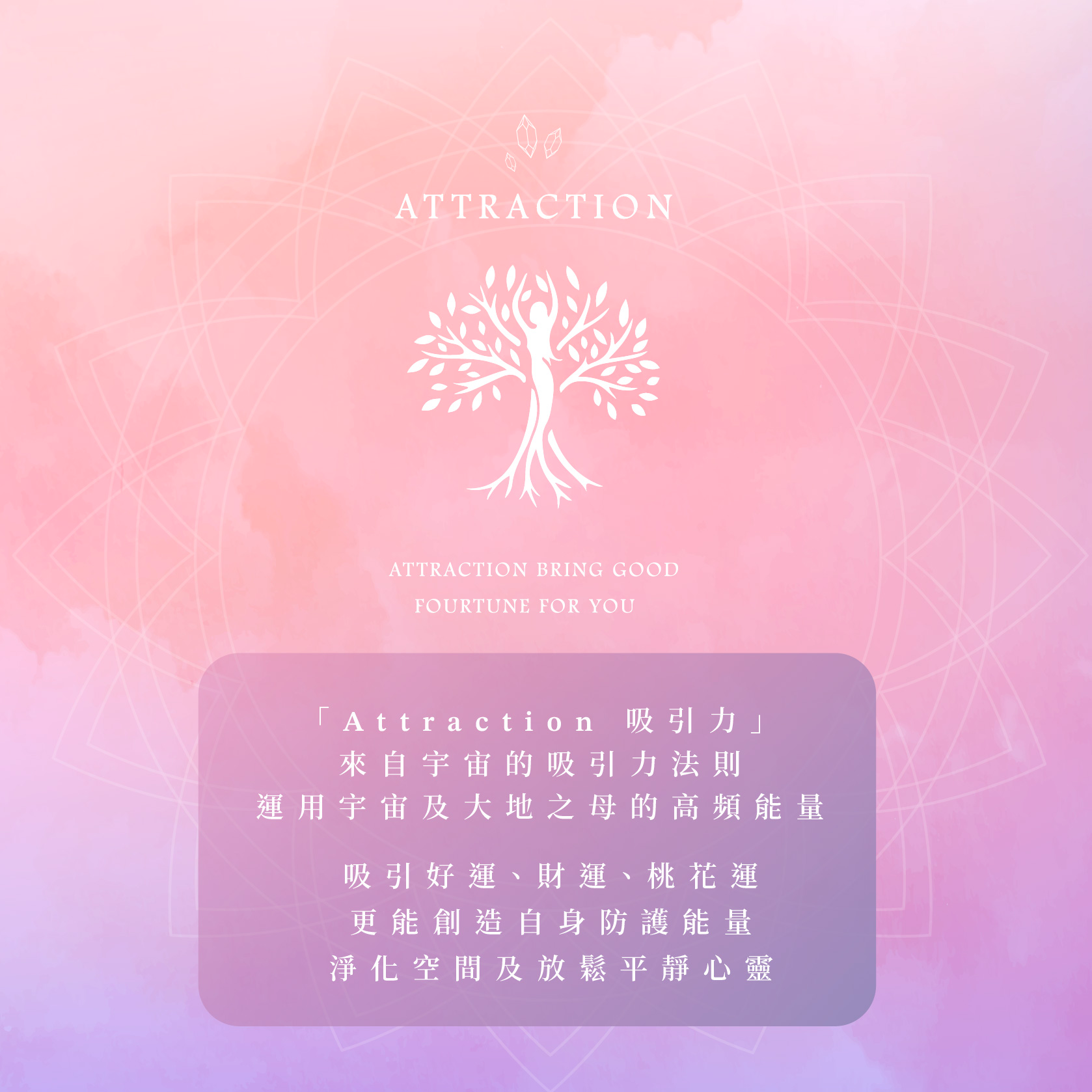 運用宇宙及大地之母的高頻能量,吸引來好運、財運、桃花運。