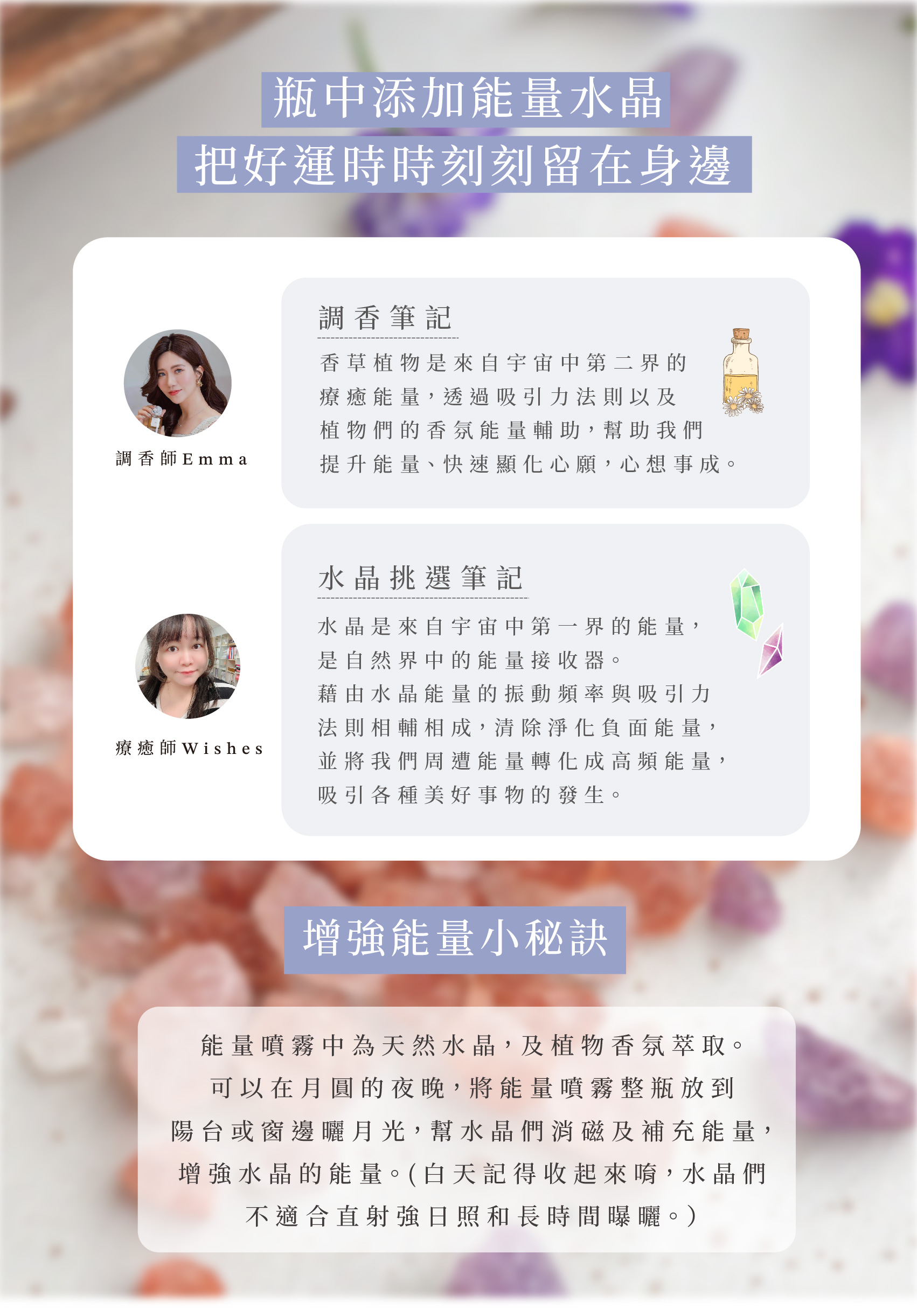 ◇由ISSA國際香氛藝術協會Emma,與 Under the Crystal水晶療癒師Wishes共同監製。