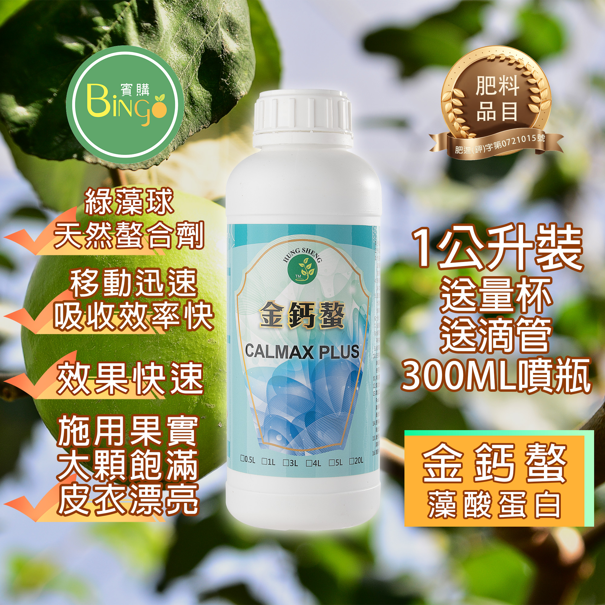 5. 鈣元素很難移動,因此需要靠人為方式即時補充才能充分提供果 實與其他生長器官所需,金鈣螯藉由葉噴方式能夠利用醇類的螯 合性、分子小容易進入葉面角質層、與植物韌皮部的親和性來強 化鈣元素的上下左右運移
