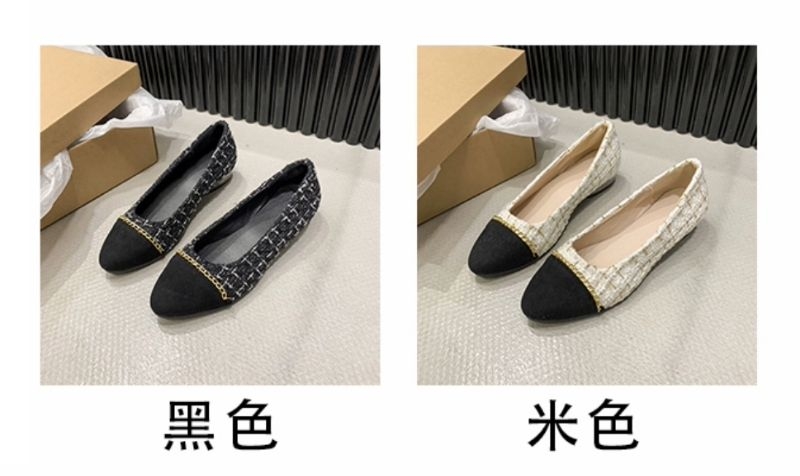 【viv】🇹🇼小香風鏈帶毛呢尖頭鞋/SH1044平底鞋/淑女鞋/低跟涼鞋大尺碼/上班鞋/包鞋/大碼