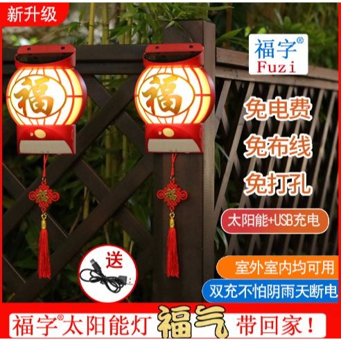☆四月科技能源☆光控太陽能燈+USB福字燈門頭燈家用戶外庭院LED燈節日感應燈超亮防水燈A0097