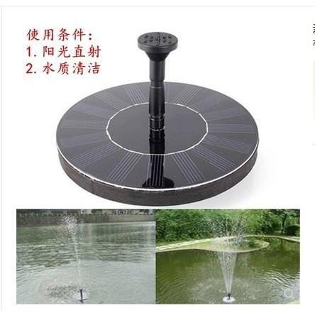 太陽能噴泉完全靠陽光才能工作,陰雨天是無法發電的,噴水量取決於陽光的強度 噴頭附贈品依收到為準 本水泵可以連接各種不同形狀的噴頭,噴出不同的水型。 產品簡介: 太陽能噴泉是利用太陽能驅動水泵抽水的景觀性噴泉裝置。本產品採用高效太陽能電池板以及新型無刷水泵,具有啟動快、效率高、穩定性強的優點。此外,產品漂浮在水面上,無需外接電源,安裝方便、操作簡單。廣泛應用於適用於花園池塘造景、公共場所水池的噴泉裝飾、小池塘活水增氧等。使用方便,放置位置合適即可,產品漂浮在水面上只有直射陽光,漂浮噴泉就能工作 。 規格參數: 太陽能板: 7V/1.4W 單晶矽 太陽能板尺寸:直徑160mm。 水泵參數: DC 3-12V 最大流量: 180L/h 最大揚程: 80cm 產品性能: 噴水高度: 30---60cm,連接不同的噴頭,噴水的高度會不同。 當太陽能板接收到充足的陽光時,水泵將在1秒鐘內啟動。 使用方法: 1)按示意圖組裝好產品。 2)將太陽能板放置在合適的地方,確保不被其它物體遮住光照。當太陽能板接收到充足的光照時,水泵即正常工作。 3)水泵剛放入水中時,裡面有空氣,可能影響噴水效果。建議等水泵正常噴水後,再連接噴頭。 注意事項: 1本產品為太陽能直驅水泵,沒有外加蓄電池,噴水的高度完全取決於陽光的強弱,在陽光弱的時候,水泵不會連續工作,但會自動的反复啟動,直至陽光達到一定強度後水泵恢復連續工作狀態。使用時請將產品放置於無遮擋的陽光下,有陰影遮擋會影響水泵正常工作。需要蓄電或者蓄電帶LED燈的請選用本公司其他型號的產品。 2水泵必須完全浸入水中,不可長時間脫水工作。當水泵剛浸入水中時,由於水泵裡面有空氣,建議等水泵正常噴水後在插入噴頭。 3請保持水源清潔,定期清洗水泵,防止異物被水泵吸入而導致水泵不能正常工作。 補充說明: (1)本太陽能水泵屬於直噴式產品,要在有明顯陽光下才能噴水,不是在任何情況下都可以工作的。 (2)為了保證產品的正常工作和使用壽命,請注意在比較清潔的水中使用。 (3)不要在沒有水的情況下將水泵直接放置於陽光下。 (4)不要將水泵與其他供電設備連接 立即選用,為您的環保溫馨的家庭添加一個適用新型的太陽能產品!