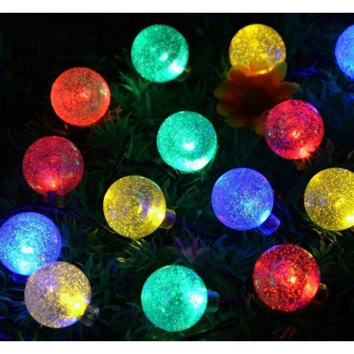 有防雨 產品介紹: 太陽能LED燈串是利用太陽能供電、由若干LED燈組成的裝飾用燈。燈具使用高效太陽能電池板,能將太陽能轉化為電能並且儲存在內置蓄電池中,以供LED燈發光之用。獨特的光控技術能夠保證燈具在白天(光線充足時)自動充電,而在晚上(光線不足時)自動點亮。此外,此燈具還具有安裝簡便、防水防曬等特點。產品廣泛應用於道路、庭院、櫥窗、店鋪、會場、舞台等場所,特別是作為聖誕樹的裝飾用燈能夠營造溫馨浪漫的節日氛圍。 產品參數及規格: 1.太陽能板2V 100MA 2.NI-MH AA 600MA 充電電池 3.模式:常亮+閃爍兩功能 4.5內凹LED顏色:帶配件汽泡珠子 5.線長:總線長4.8M.引線:1.5M,燈間距:0.165M