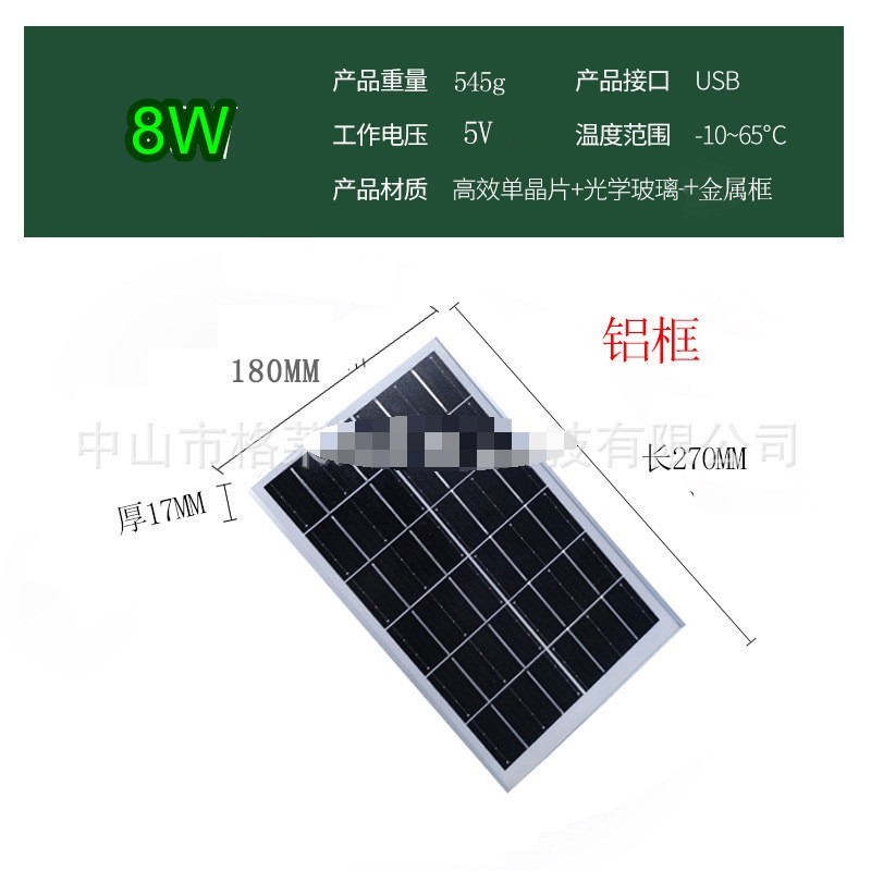答:我們已經進行了識別電阻的處理,把USB的D+D-短接,可以支持大部分的手機包括IPHONE,不排除部分手機無法兼容的情況。太陽直射大約3小時左右即可充滿,當然野外應急可以邊曬邊打電話。