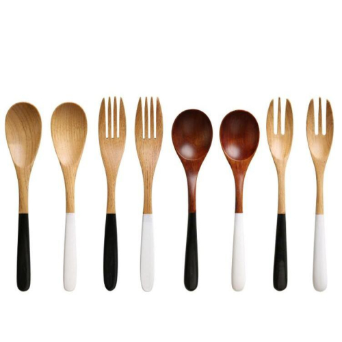 現貨稀!19/23.5CM實木栗木湯匙環保餐具黑白上漆木勺筷套裝【CH523】