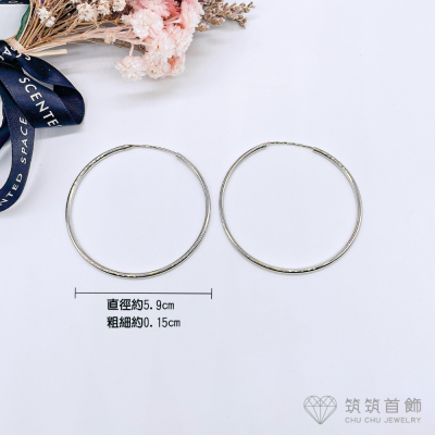 ❤️筑筑首飾❤️銀色圈圈59mm針式耳環