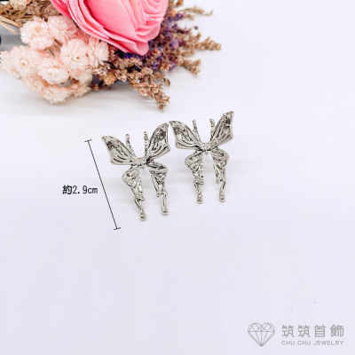 ❤️筑筑首飾❤️典雅銀色蝴蝶925純銀耳針耳環