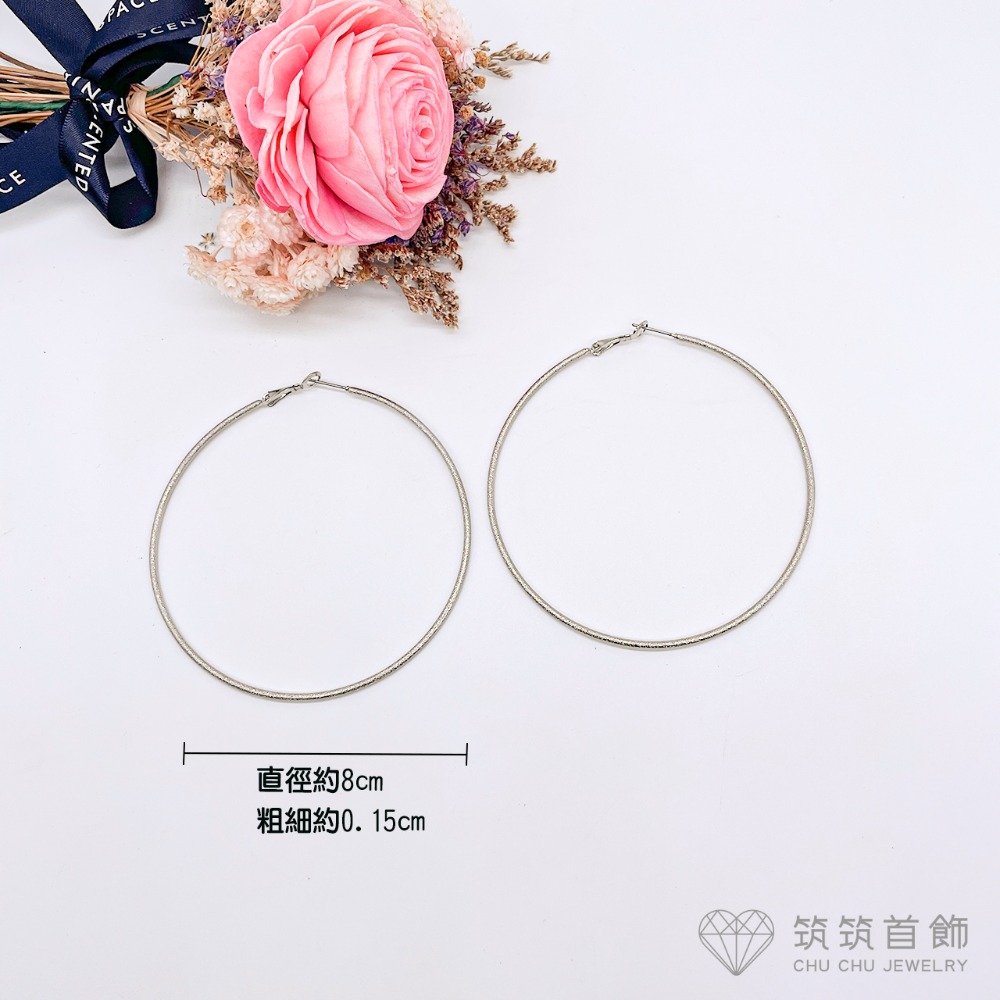 ❤️筑筑首飾❤️銀色磨砂紋圈圈80mm針式耳環