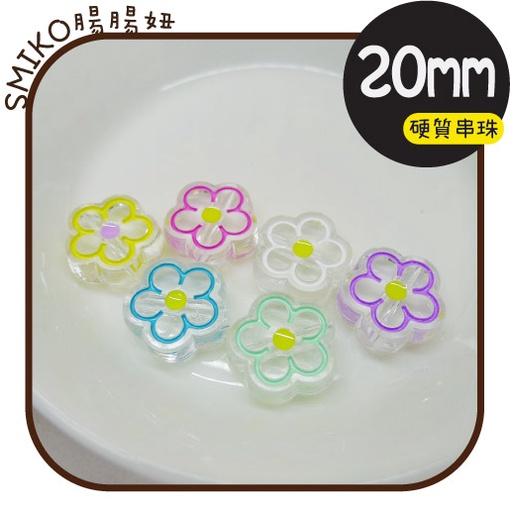 Smiko腸腸妞【5B2U53】20mm透明線條小花花壓克力硬珠串珠串珠/穿珠 髮飾/髮圈/手作/DIY/兒童