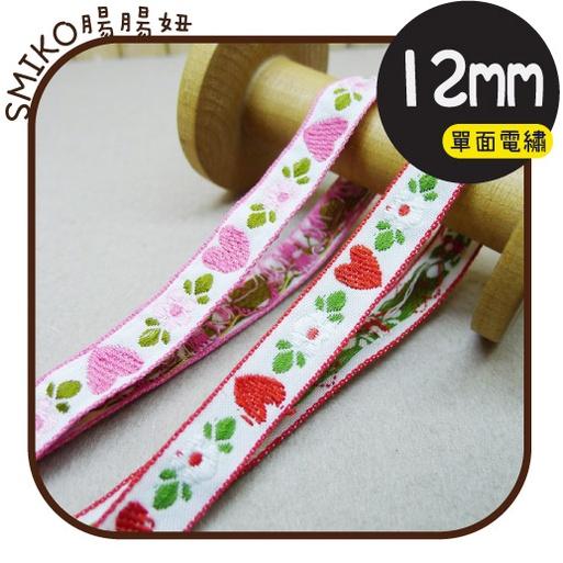 Smiko腸腸妞【5R2U18】12mm愛心花卉民族風單面電繡織帶 髮飾/背帶/防掉落帶/平安符袋/緞帶/奶嘴鍊/材料