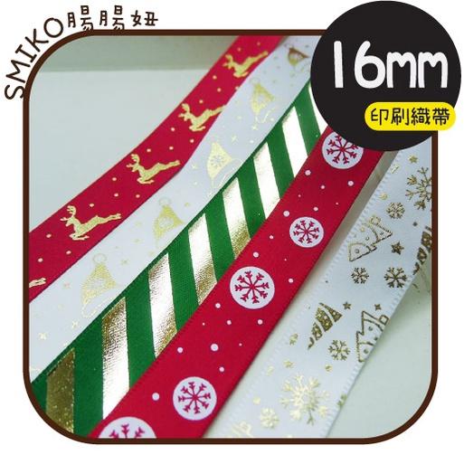 Smiko腸腸妞【5R1U91】16mm燙金麋鹿鈴鐺雪花聖誕樹款緞帶 耶誕/織帶/包裝/交換禮物/手作/DIY