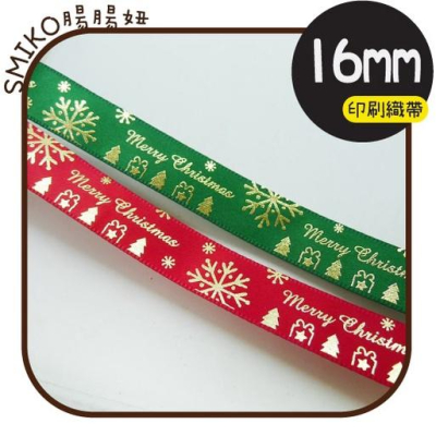 Smiko腸腸妞【5R1U92】16mm燙金耶誕雪花房屋緞帶 聖誕/織帶/包裝/交換禮物/手作/DIY