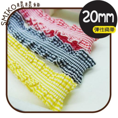 Smiko腸腸妞【5R1U76】20mm格子裙帶波浪花邊彈性帶 織帶/緞帶蝴蝶結/包裝/DIY/手作