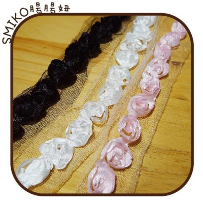 Smiko腸腸妞【5R8219】40MM優雅緞面玫瑰花朵朵花邊 蕾絲/窗簾/紗布/DIY/門簾/桌巾