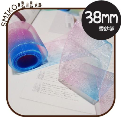 Smiko腸腸妞【5R8306】38mm夢幻彩虹漸變雪紗帶 迴紋緞帶/織帶/包裝/蝴蝶結/手作/髮夾/髮圈/髮帶/裝飾