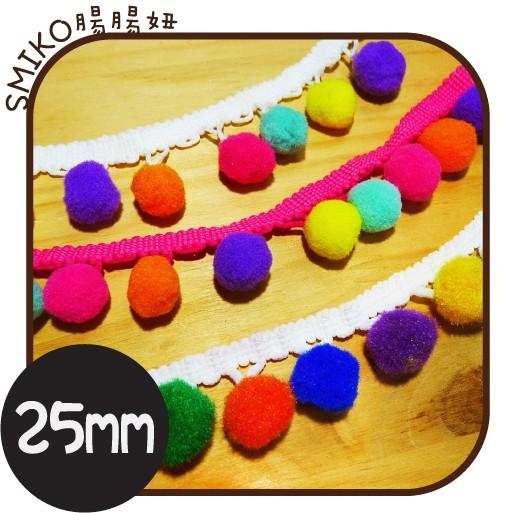 Smiko腸腸妞【5R7132】25mm彩虹大毛絨豆豆球花邊 蕾絲/窗簾/紗布/DIY/門簾/桌巾/副料