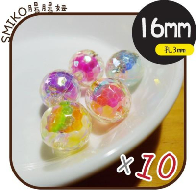 Smiko腸腸妞【5K9312】16mm72切面圓型幻彩珠中珠穿孔珠 髮飾/髮圈/手作/DIY/兒童