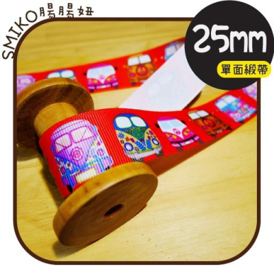 Smiko腸腸妞【5R9465】25mm公車彩蛋彩繪單面羅紋緞帶 織帶/螺紋/蝴蝶結/奶嘴鏈/DIY/手作