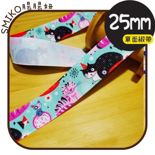 Smiko腸腸妞【5R9462】25mm湖綠黑白貓單面螺紋緞帶 織帶/螺紋/蝴蝶結/奶嘴鏈/DIY/手作