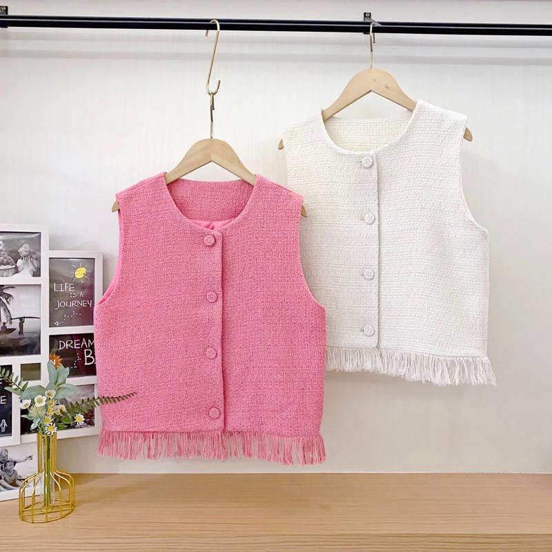 韓國東大門🇰🇷兩色春夏法式韓妞韓版小香風圓領拼接流蘇毛邊設計粗花呢背心馬甲