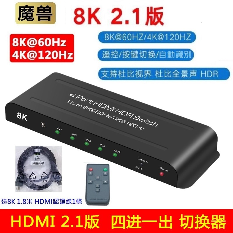 魔獸 MOSHOU 新品 HDMI 2.1版 4進1出 四進1出 高清換器 8K 60Hz 4K 120Hz