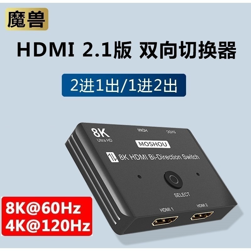 魔獸 MOSHOU 新品 HDMI 2.1版 2進1出 1進2出 高清双向切換器 8K 60Hz 4K 120Hz