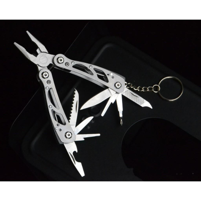 名稱:小號工具鉗 此款是小號方便攜帶,賣場有另一款大可參考。 規格:折疊75MM、展開115MM、三圍75*35*17MM 材質:2CR13(420鋼) 重量:淨重約82克 1、鉗頭(尖嘴鉗、常規鉗、剪線鉗) 2、小刀 3、中一字 4、十字 5、雙面銼 6、開瓶器(帶有大一字) 7、小刮刀 8、小一字 9、牙刀(魚鱗器 10、鑰匙扣 簡介說明:此款產品集合多功能於一體,把日常所需的小工具巧妙地收納在體積較小的工具裡,大大地節省了空間體積,便於攜帶,功能實用