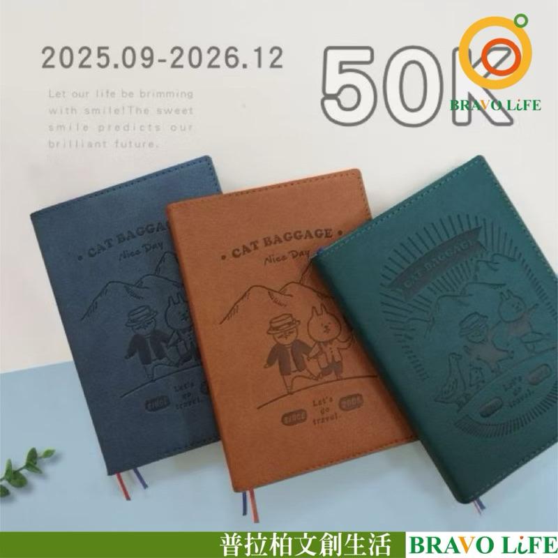 現貨正版 2026年 貓行李 跨年日誌 50K跨年皮書衣手帳 週誌 行事曆 手帳 年度計劃 月計劃 行程規劃 備忘 旅行
