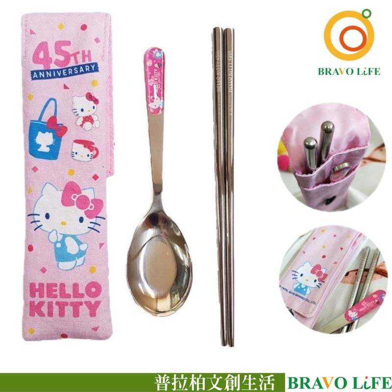 現貨正版 Hello kitty 帆布典雅餐具組 環保餐具 筷子 湯匙 304不鏽鋼餐具 不銹鋼筷 旅行 餐具 三麗鷗