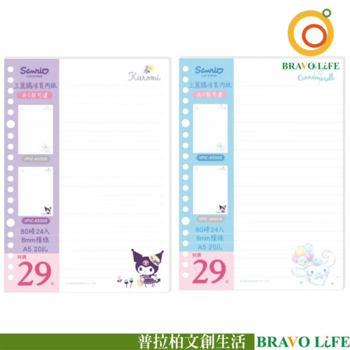 現貨正版 三麗鷗20孔活頁內紙 大耳狗活頁紙 A5 20孔 20頁入 酷洛米活頁紙 活頁式 80磅