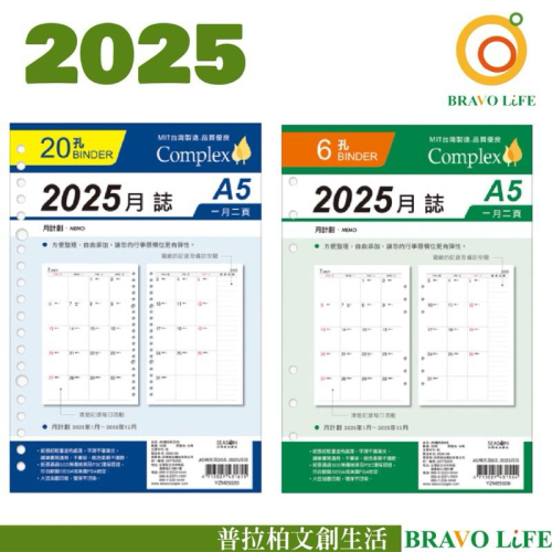現貨正版 2025年月誌 A5補充頁 6孔 20孔 月計劃 萬用手冊內頁 活頁紙 行事曆 工商日誌 年度計劃 學習 旅行