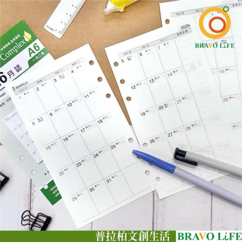 現貨正版 2026年 月誌 A6補充頁 6孔 月計劃 萬用手冊內頁 活頁紙 行事曆 工商日誌 年度計劃 旅遊行程 學習