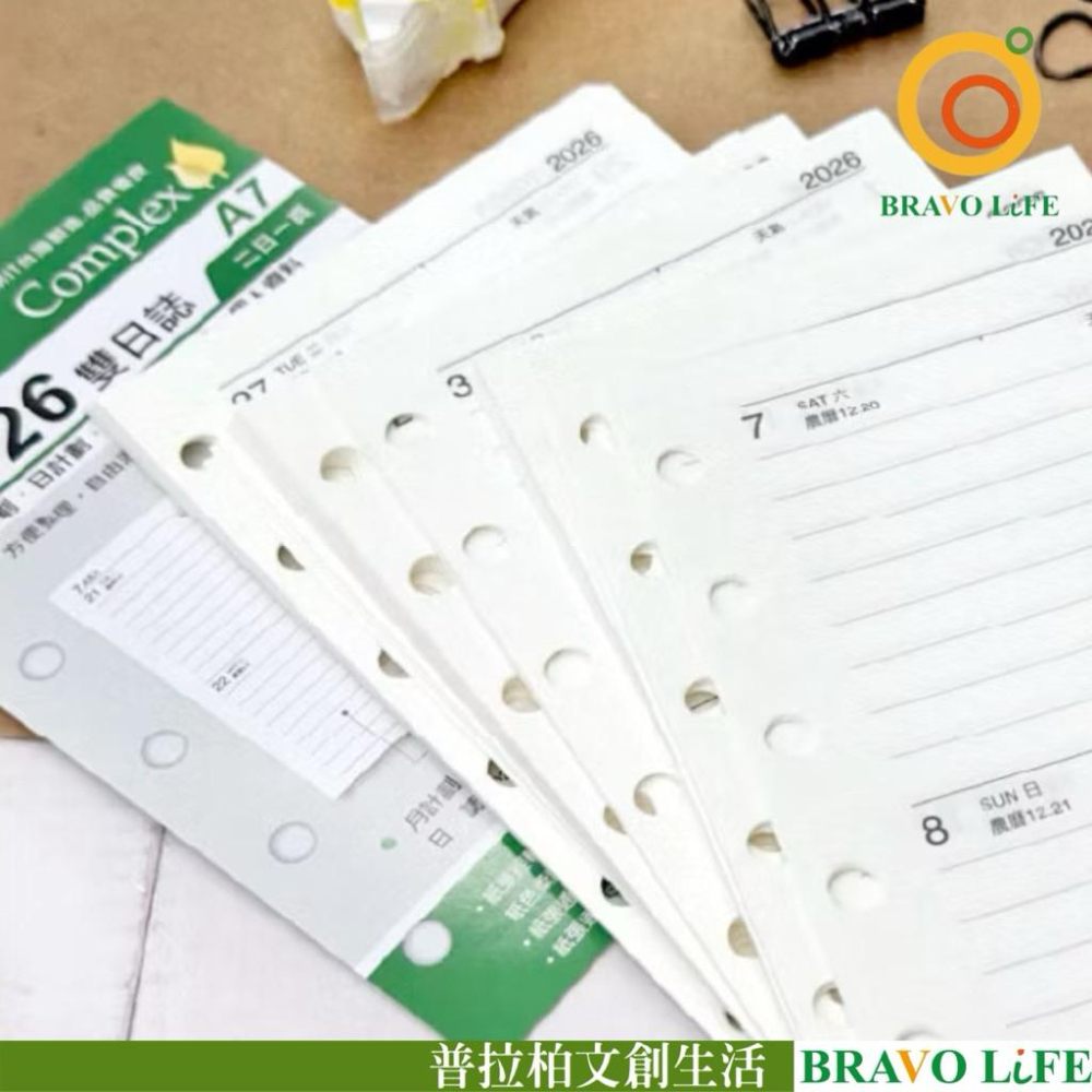 現貨正版 2026年 雙日誌 A7補充頁 6孔 萬用手冊內頁 活頁紙 行事曆 二天一頁 工商日誌 年度計劃 旅遊行程