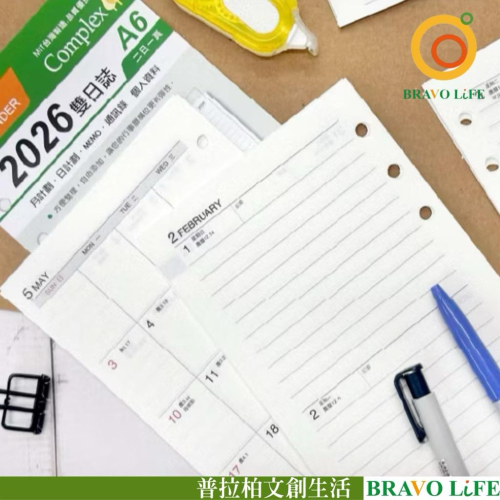 現貨正版 2026年 雙日誌 A6補充頁 6孔 萬用手冊內頁 活頁紙 行事曆 二天一頁 工商效率手冊 年度計劃 旅遊行程