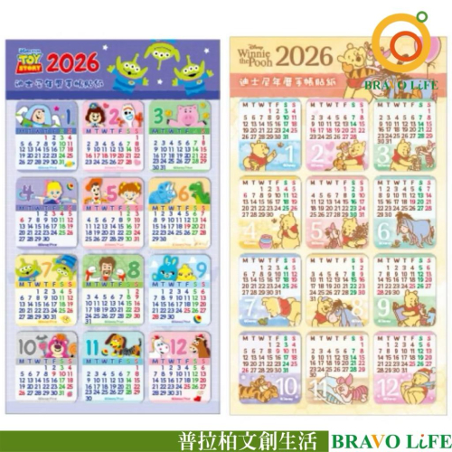 現貨正版 2026年 迪士尼 年曆貼紙 年曆手帳貼紙 三眼怪 日期貼紙 維尼 屹耳 小豬 月曆貼紙 年曆貼 台灣製