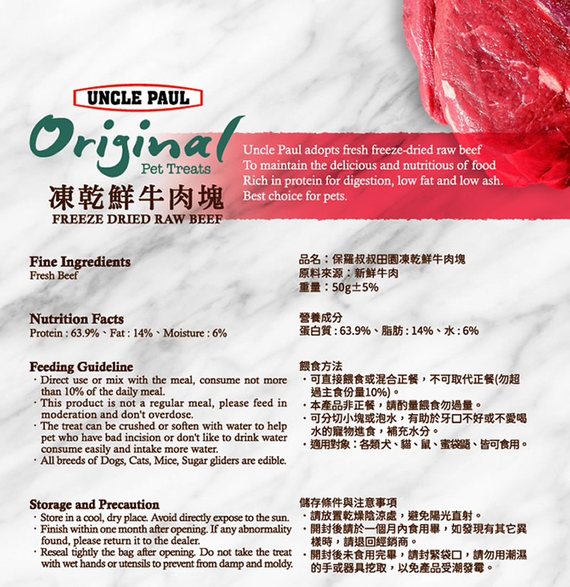 • 凍乾鮮牛肉塊50g