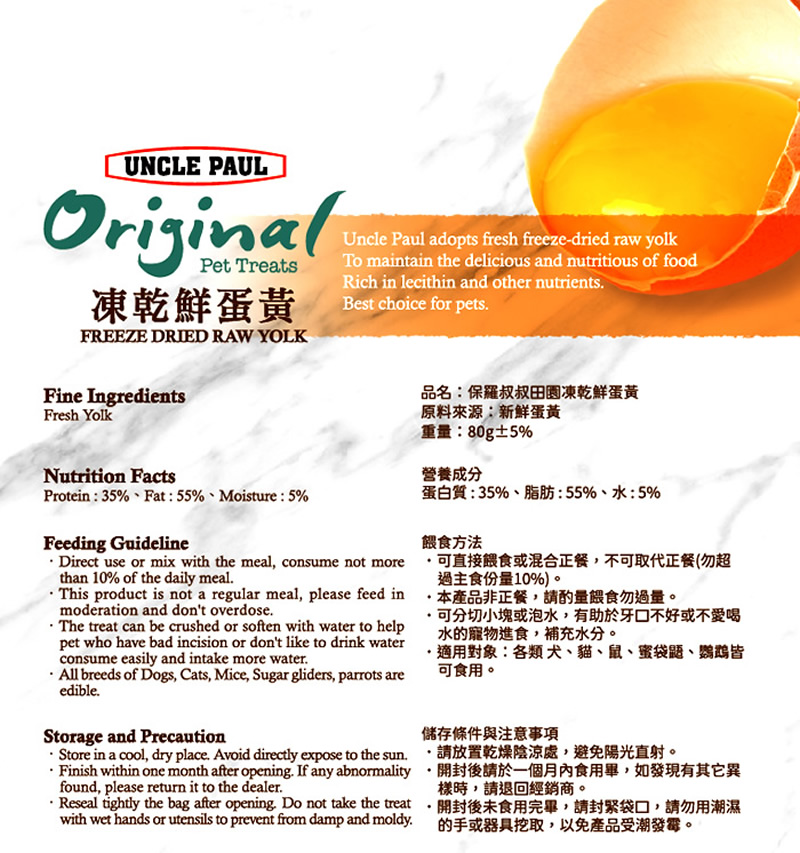 • 凍乾鮮蛋黃80g