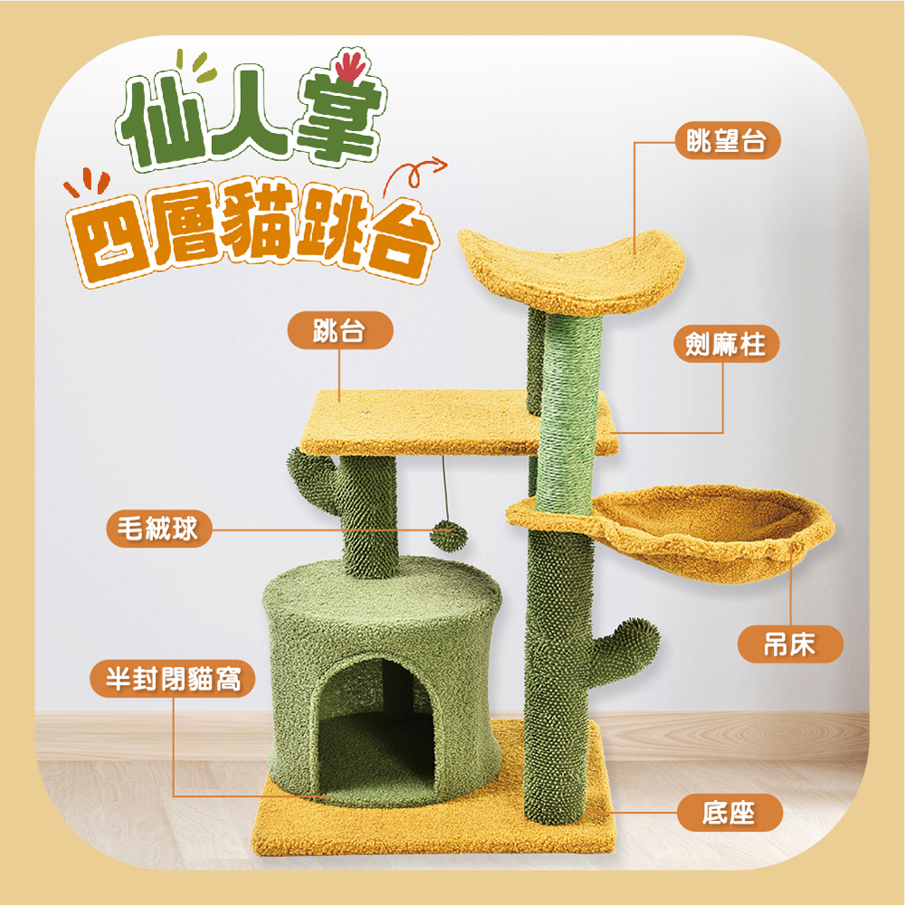 樂居商城 斑尼菲 仙人掌四層貓跳台 貓窩 貓用品 寵物用品 貓咪跳台