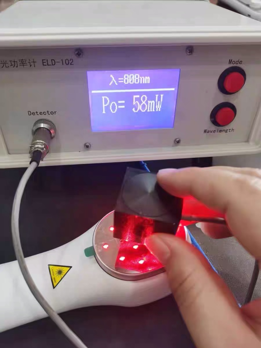紅外光雷射(808nm) 距離1公分時功率實測: 58mW