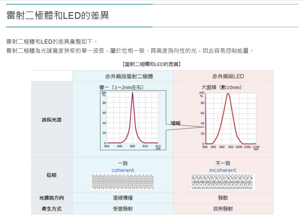 近紅外線(波長808nm): 3顆,每顆90mW±20% (不可見光)