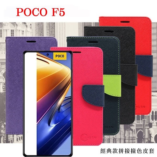 POCO F5 經典書本雙色磁釦側翻可站立皮套 手機殼 可插卡 保護套【愛瘋潮】
