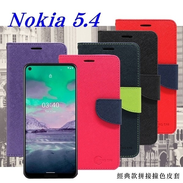 諾基亞 Nokia 5.4 5G 經典書本雙色磁釦側翻可站立皮套 手機殼 側掀皮套 可插卡 可站立【愛瘋潮】