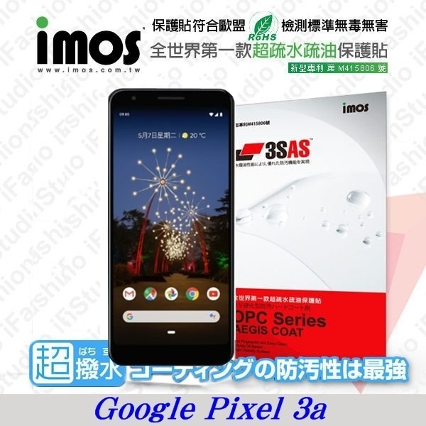 Google Pixel 3a iMOS 3SAS 防潑水 防指紋 疏油疏水 螢幕保護貼【愛瘋潮】