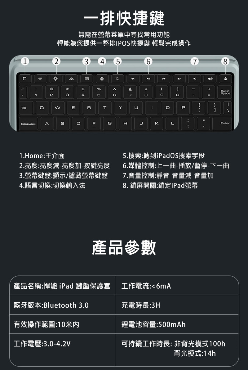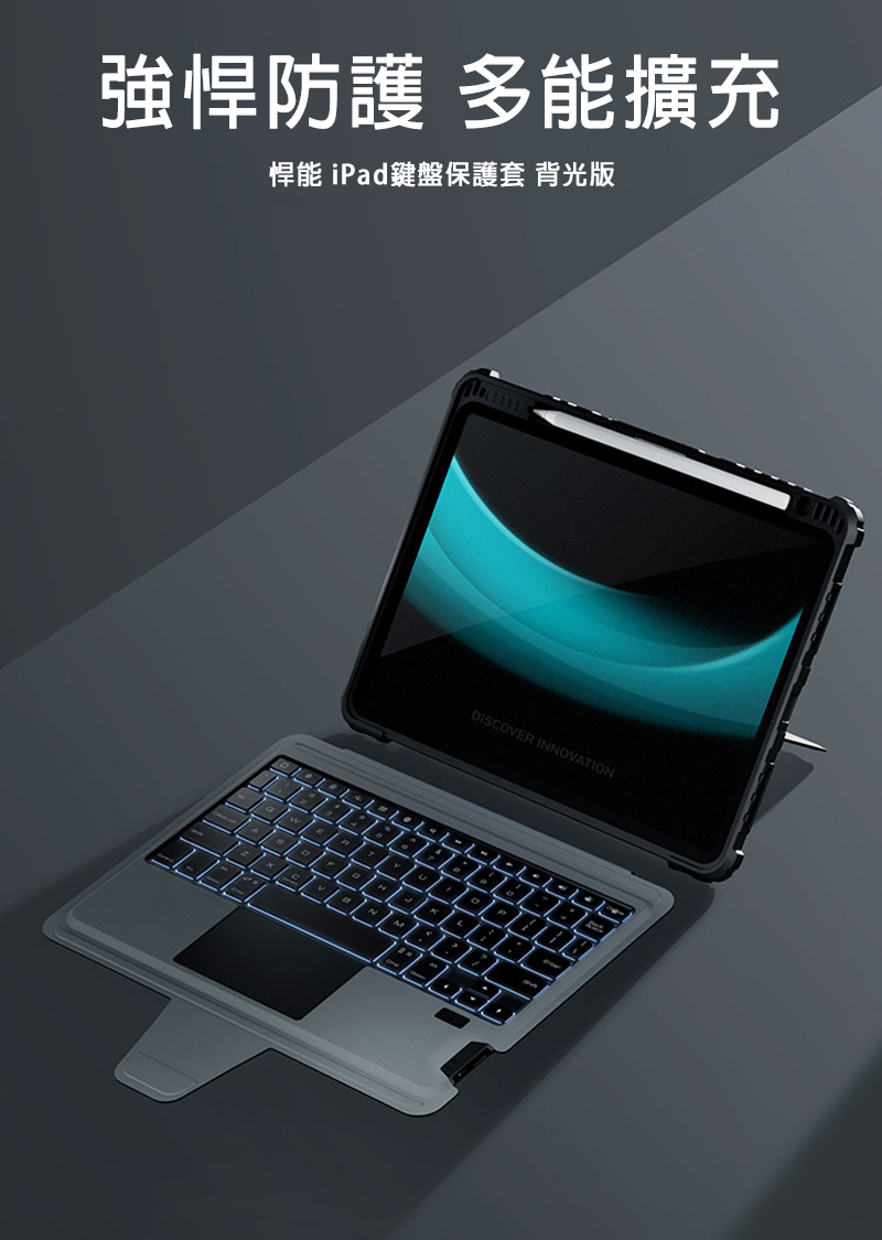.悍能(背光版)是一款適用於iPad 的多功能鍵盤保護套