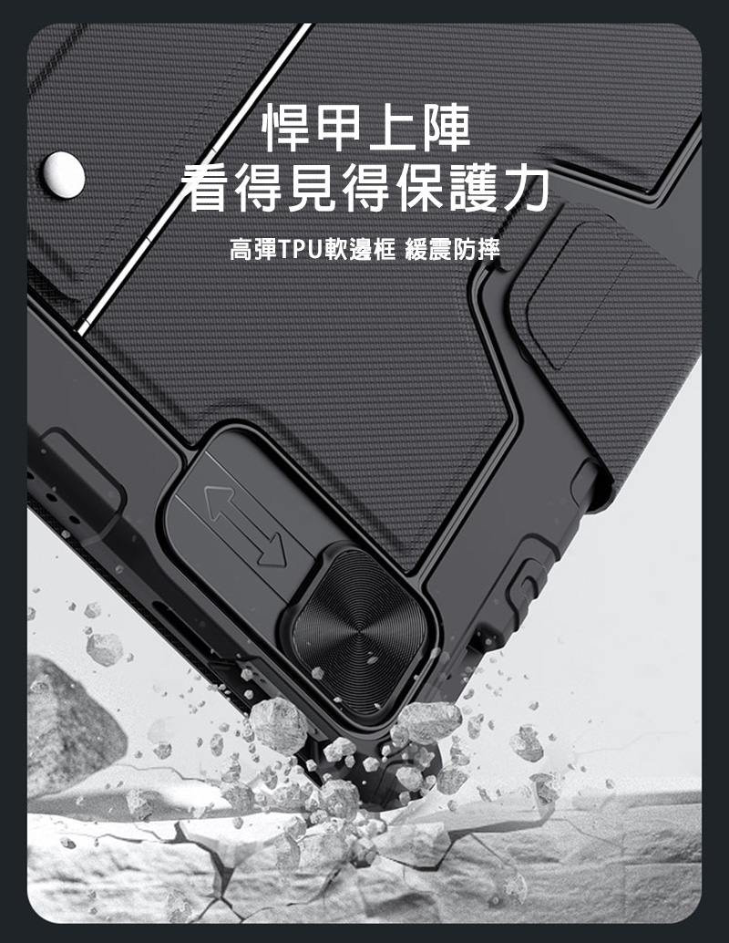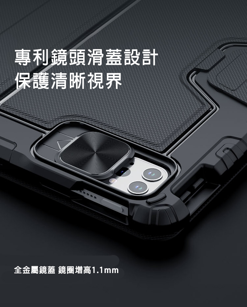 .強悍抗摔保護殼緊貼機身,搭配專利滑蓋鏡頭設計