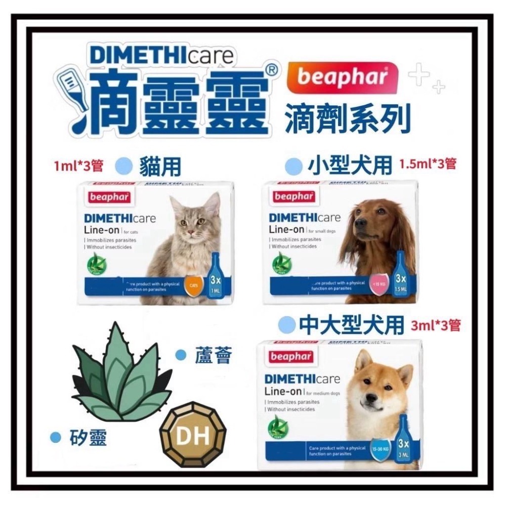 📍 犬貓滴劑 🔺 歐洲原裝、荷蘭進口。 https://s-cf-tw.shopeesz.com/file/tw-11134208-7rbkc-m97gfjg0b0vt5c ★【成份介紹】天然蘆薈、矽靈、香精 ★【產地】荷蘭 ★【保存方式】開封後,請放置於陰涼處,避免日曬。 ★【注意事項】 1.請避免孩童接觸使用。 2.不適用於耳朵內或開放性傷口或皮膚受損部位。 3.若接觸到眼睛或嘴巴,請用大量清水清洗。 4.如果使用上有問題,請洽獸醫專業人員。 ---------------------------------------------------------------------------------- ★貓用產品規格:1ml/管,1盒共3管 【適用對象】12周以上貓咪皆可使用,一次使用一管。懷孕或授乳貓不得使用。 【使用方式】 1. 撥開毛髮。 2. 將滴劑沿背從脖子到尾巴的皮膚上點一條直線,無需按摩。 3. 一管可維持約 8-10 天,建議每 8-10 天洗澡後使用 4. 洗澡後吹乾毛髮再使用,如碰水需再次乾燥並重新使用滴劑。 --------------------------------------------------------------------------------- ★小型犬用產品規格:1.5ml/管,1盒共3管 【適用對象】12周以上,15Kg以下,一次使用一管,懷孕或授乳犬不得使用。 【使用方式】 1. 撥開毛髮。 2. 將滴劑沿背從脖子到尾巴的皮膚上點一條直線,無需按摩。 3. 一管可維持約 8-10 天,建議每 8-10 天洗澡後使用 4. 洗澡後吹乾毛髮再使用,如碰水需再次乾燥並重新使用滴劑。 ------------------------------------------------------------------------------- ★中大型犬產品規格:3ml/管,1盒共3管 【適用對象】12周以上,15Kg-30kg使用一管,30k以上,一次使用兩管,懷孕或授乳犬不得使用。 【使用方式】 1. 撥開毛髮。 2. 將滴劑沿背從脖子到尾巴的皮膚上點一條直線,無需按摩。 3. 一管可維持約 8-10 天,建議每 8-10 天洗澡後使用 4. 洗澡後吹乾毛髮再使用,如碰水需再次乾燥並重新使用滴劑。