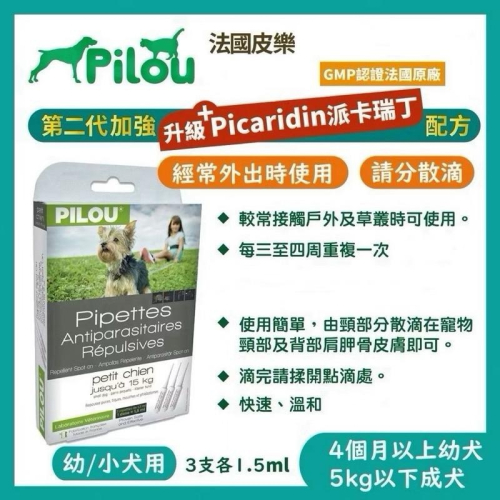 ~Petroyal~Pilou法國皮樂第二代加強配方《天然滴劑-幼小型犬》 幼小型犬滴劑 5公斤以下成犬