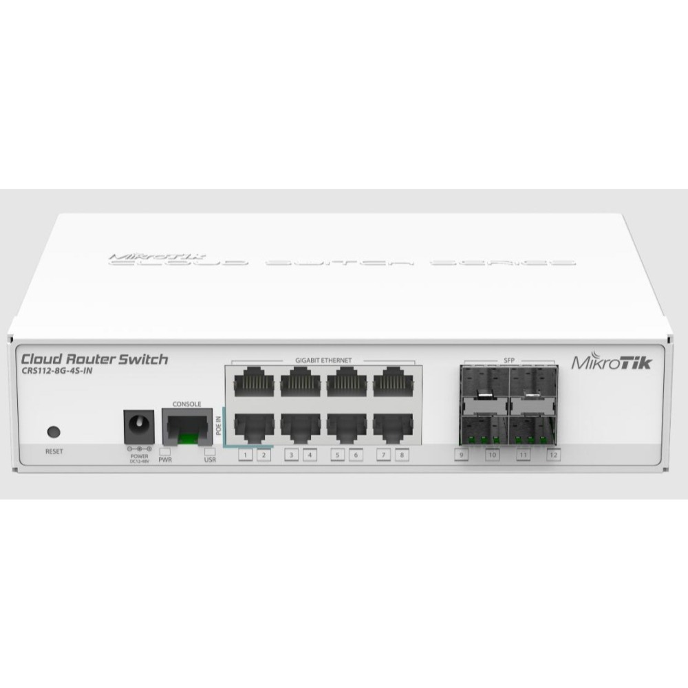 Cloud Router Switch 112-8G-4S-IN is a “small size low cost” member of our CRS series. It comes with eight Gigabit Ethernet ports and four SFP cages.